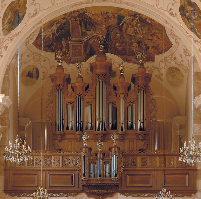 Abgesehen von den oben erwähnten Pfeifen, die ebenfalls beibehalten wurden, ist die Orgel komplett erhalten. Der Prospekt, nach Pariser Modell, fügt sich bestens in die vorarlbergische Architektur der Benediktinerabtei ein.