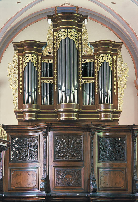 This colorful 2-manual instrument was built in 1738 by Balthasar König. It has been perfectly restored by Hubert Fasen in 2002.
