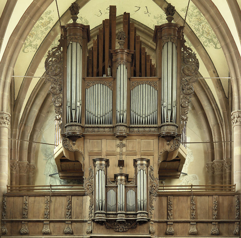 In 1789 the organ was taken down and moved to one of the transepts, where it remained until Xavier Stiehr (Seltz) moved it back in 1840 to the now widened west gallery. The pedal was raised up, probably to create more room for the choir.