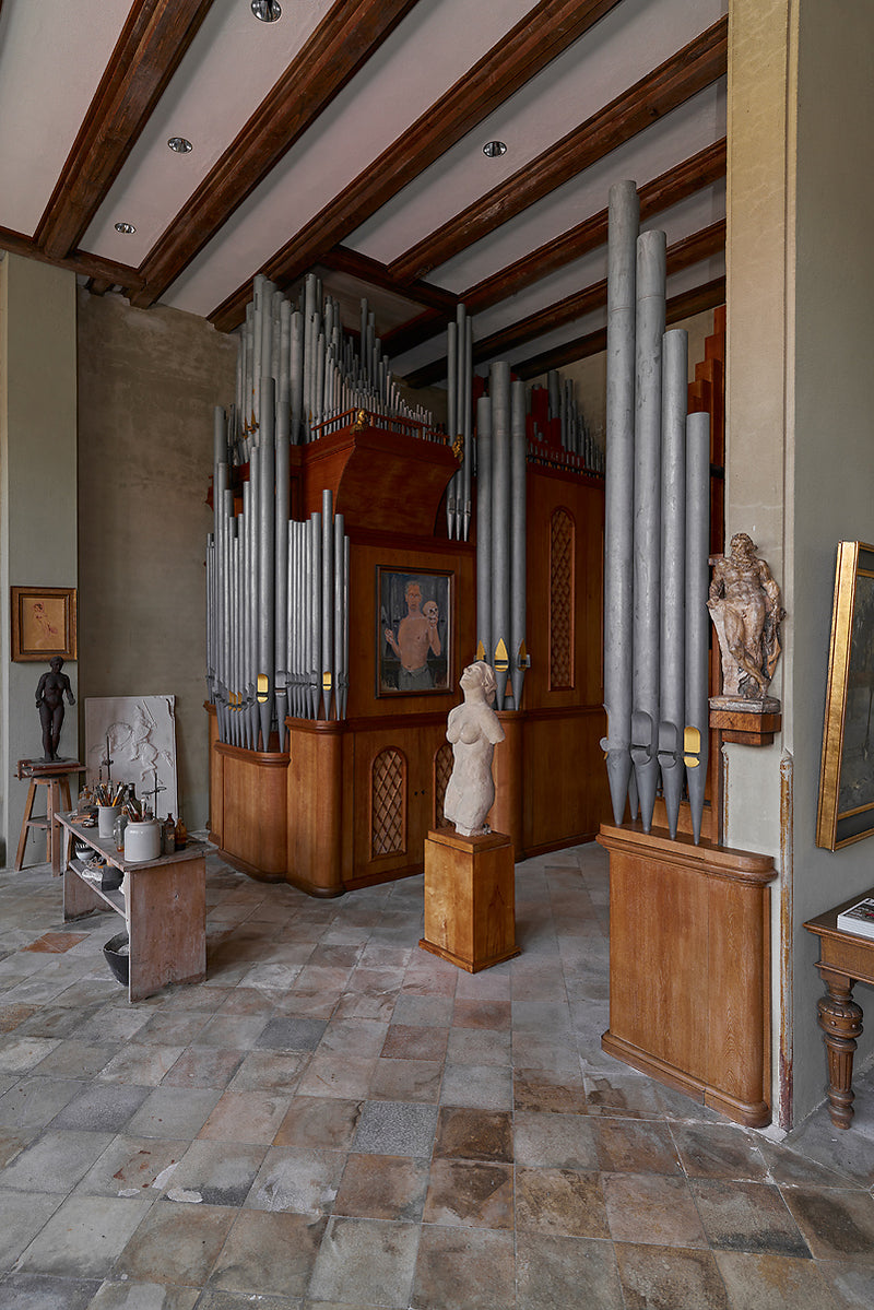 From 1937 to 1947, the largest privately owned organ in the Wendland region was built in the workshop of the painter, sculptor and writer Hugo Körtzinger in Schnega. The instrument from the Oscar Walcker manufactory in Ludwigsburg, op. 2576, with electric action and stop action, was initially equipped with 6 foundation stops with 663 pipes, each of which could be used several times using the multiplex system with 41 stops.