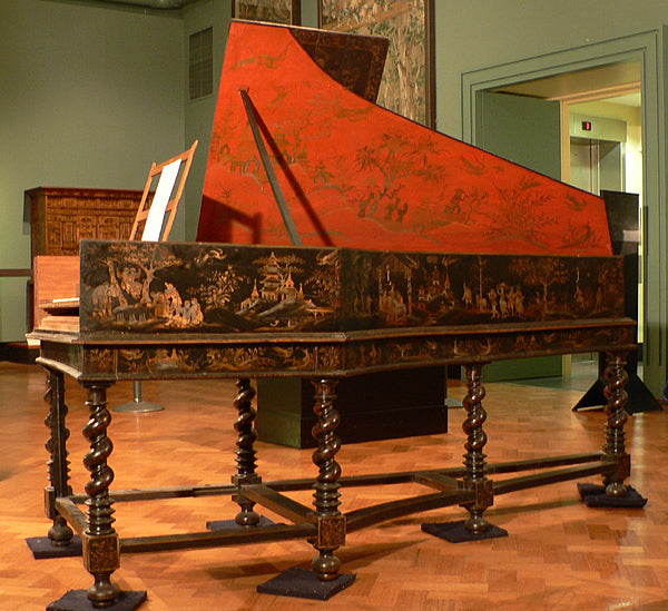 The instrument, which is about 2.17 meters in length, displays numerous elements characteristic of seventeenth-century French harpsichord construction. On the other hand a surprising characteristic of lute construction can be seen in the elaborate system of delicate ribs, otherwise unknown in harpsichord building.