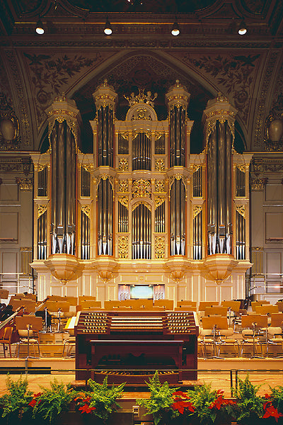 This organ suiting for a concert hall fascinates by its richness of colours and by the uniqueness of its specification designed by Jean Guillou.